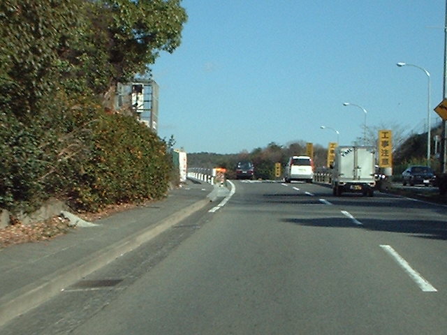 看板を過ぎて右に浄水場を眺めながら、信号を超えた先にレーダー、その先、1車線を塞い