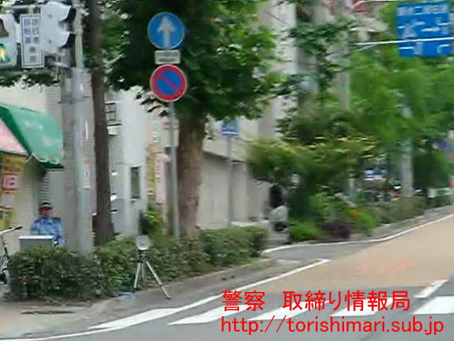 のすぐ先、UFJ銀行の前・歩道橋の降り口のところからレーダーが狙っている。