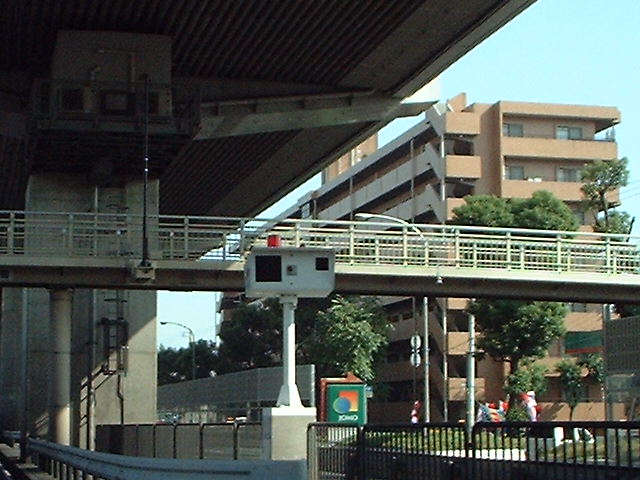 にもなっている記念公園の横、歩道橋の真下にレーダーがあった。その先のJR越えの高架手前が