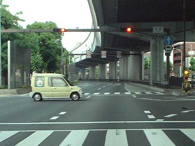 超え直線路になる。高速の陸橋が見える その真下の歩道からレーダーが狙っている。